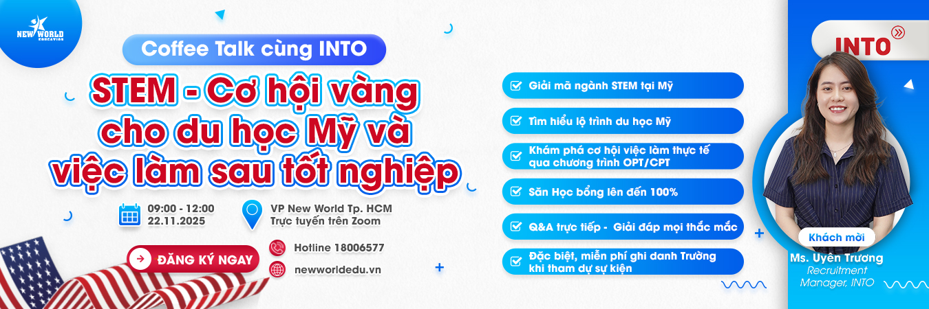 Với những điểm nổi bật trên, nước Mỹ vẫn là điểm đến hứa hẹn với nhiều bạn Du học sinh quốc tế. Để tìm hiểu thêm thông tin về hành trình du học Mỹ, liên hệ New World để được hỗ trợ thông tin miễn phí.